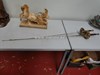 Beelden in hout | Bid: €1,00 | 2 stuks- +/- 70 cm |